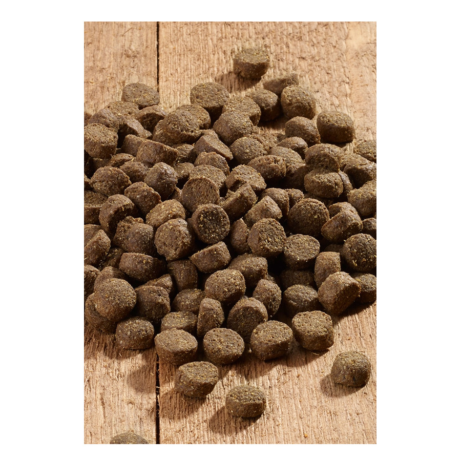 Mäso a vedľajšie živočíšne produkty (múka z hydinového a jahňacieho mäsa), gabonafélék (jačmeň ),vedľajšie rastlinné produkty (celulóza, sušené repné rezky), ryby a vedľajšie produkty z rýb (múka z morských rýb), oleje a tuky , zelenina (mrkva*), semená (ľan), vajcia a produkty z vajec (sušené vajcia celé), minerálne látky, droždie*, riasy*, liečivé byliny *, výťažky z kvasníc* (zdroj mannánových oligosacharidov), zelené ústrice * (Perna canaliculus)